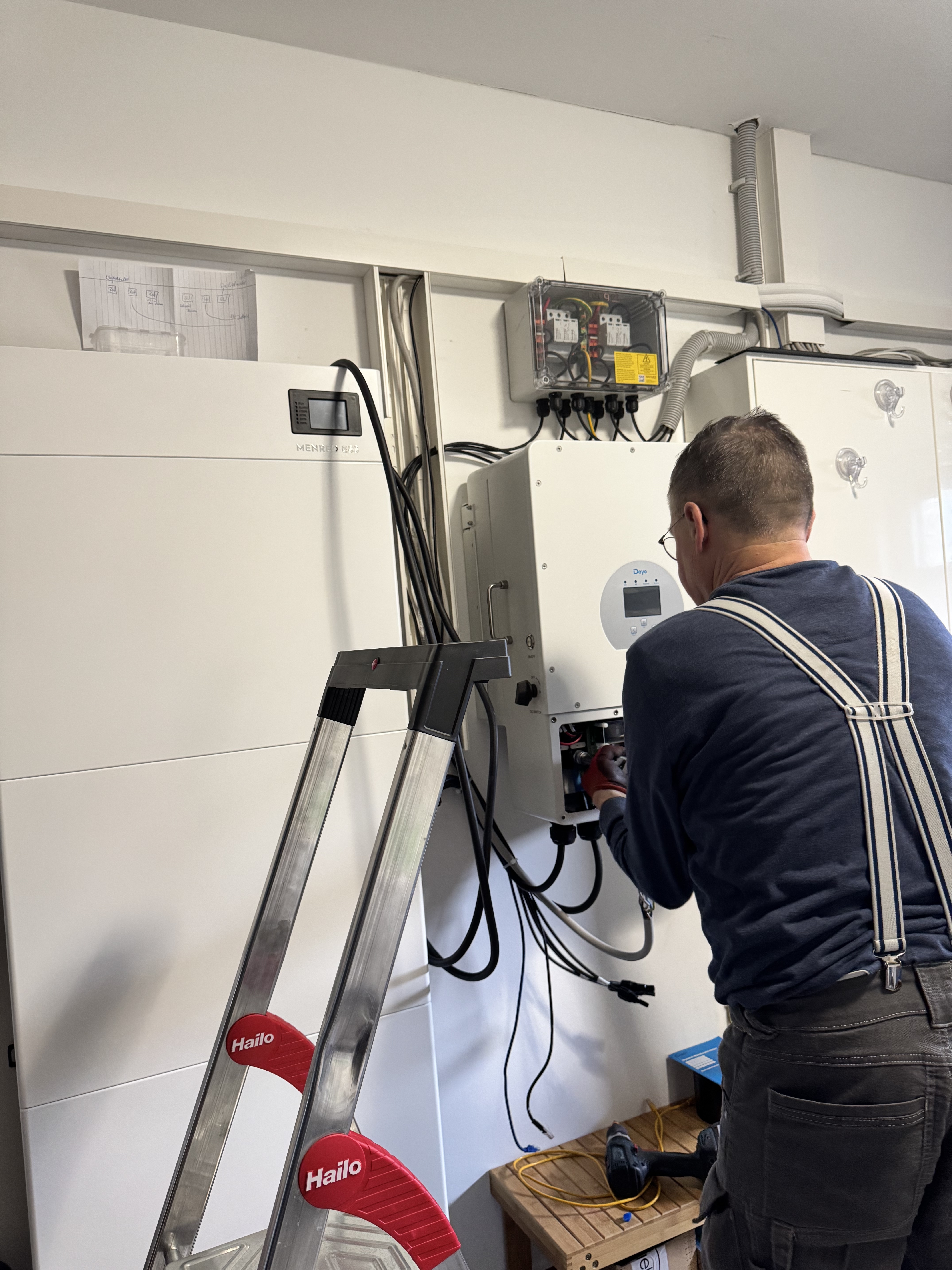 A residential solar installation in Europe uses one Menred ESS LFP.6144.G3 battery system, configured with three 6.144kWh modules for a total usable capacity of 18.43kWh. The battery group is connected to a Dyeye hybrid inverter through Menred’s centralized control box designed for G3 configurations.