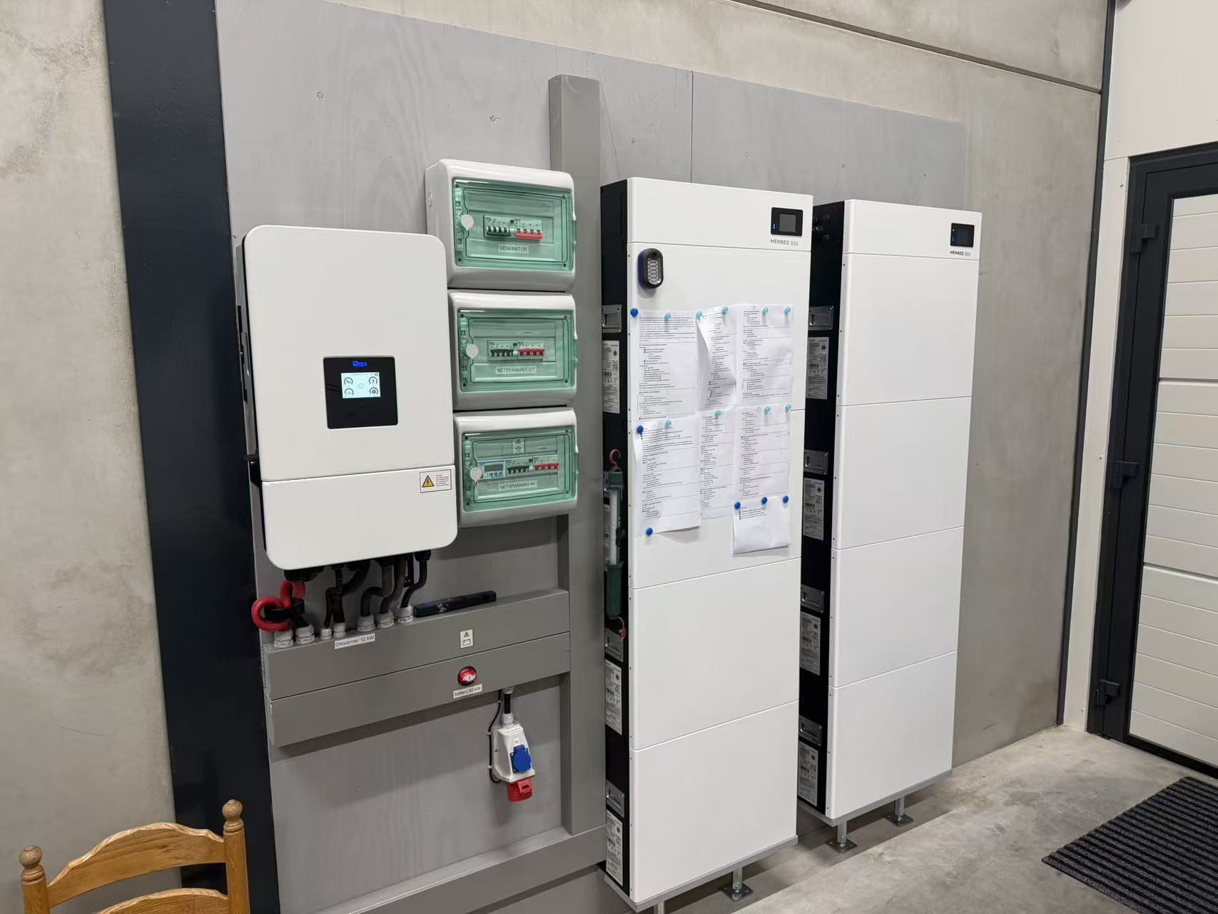 Usable capacity reaches 46.68kWh at 95% depth of discharge, with cycle life exceeding 6,000 at 0.5C and 25°C. Dimensions per unit are 600×1910×210mm, weight 270kg. Up to four units can be paralleled per group; this installation uses two. Standard warranty is 5 years, with a 10-year option available.